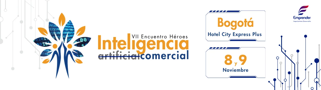 Emprender se enorgullece en anunciar la celebración del VII Encuentro Héroes: Inteligencia Artificial Comercial, que se llevará a cabo los días 8 y 9 de noviembre de 2024 en Bogotá.